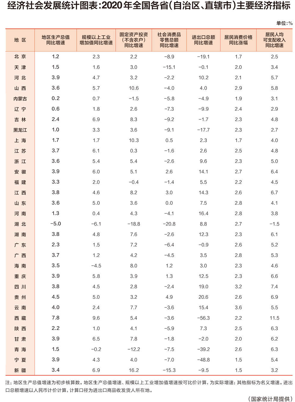 經(jīng)濟社會發(fā)展統(tǒng)計圖表:2020年全國各省(自治區(qū)、直轄市)主要經(jīng)濟指標