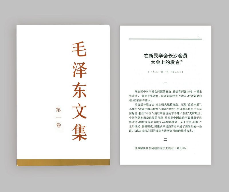 圖為《毛澤東文集》第一卷作為開篇收入的毛澤東在新民學(xué)會(huì)長沙會(huì)員大會(huì)上的發(fā)言。