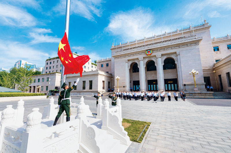 維護黨的團結(jié)和集中統(tǒng)一,不能停留在口頭上,而是要體現(xiàn)在行動上。全國政協(xié)機關(guān)是服務(wù)專門協(xié)商機構(gòu)建設(shè)的搭臺者,始終注重把維護黨的團結(jié)和集中統(tǒng)一,體現(xiàn)到增強“四個意識”、堅定“四個自信”、做到“兩個維護”上,體現(xiàn)到堅決貫徹落實習(xí)近平總書記重要講話、重要指示批示精神和黨中央決策部署的具體行動上,為專門協(xié)商機構(gòu)發(fā)揮在國家治理體系中的重要作用更好服務(wù)。圖為2020年7月1日,全國政協(xié)機關(guān)在中共八大會址(全國政協(xié)禮堂)前舉行升國旗儀式。 人民政協(xié)網(wǎng)記者 賈寧/攝