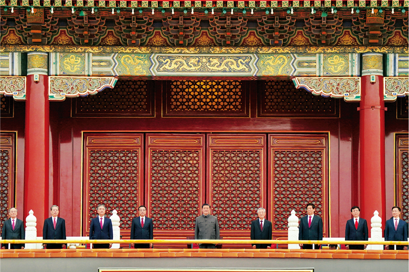 2021年7月1日,慶祝中國(guó)共產(chǎn)黨成立100周年大會(huì)在北京天安門廣場(chǎng)隆重舉行。習(xí)近平、李克強(qiáng)、栗戰(zhàn)書、汪洋、王滬寧、趙樂(lè)際、韓正、王岐山、胡錦濤等出席大會(huì)?!⌒氯A社記者 殷博古/攝
