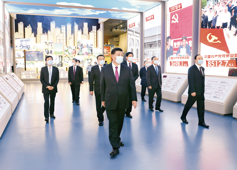 2021年6月18日,黨和國(guó)家領(lǐng)導(dǎo)人習(xí)近平、李克強(qiáng)、栗戰(zhàn)書、汪洋、王滬寧、趙樂(lè)際、韓正、王岐山等在中國(guó)共產(chǎn)黨歷史展覽館參觀“‘不忘初心、牢記使命’中國(guó)共產(chǎn)黨歷史展覽”。 新華社記者 鞠鵬/攝