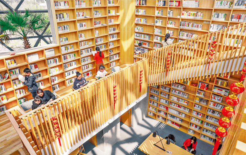 城市書房是一座城市的精神高地,江蘇靖江馬洲公園東北角的容湖書房,于一隅之地靜守書香,聚起城市的書卷氣質(zhì),成為最富人文詩意的文化地標(biāo)。圖為當(dāng)?shù)厥忻裨凇白蠲莱鞘袝俊比莺繒诚黹喿x時(shí)光?!〗K省委宣傳部供圖 盛義/攝