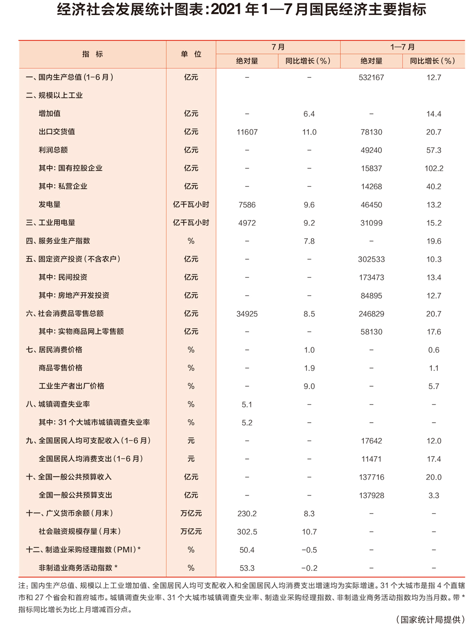 經(jīng)濟社會發(fā)展統(tǒng)計圖表:2021年1—7月國民經(jīng)濟主要指標
