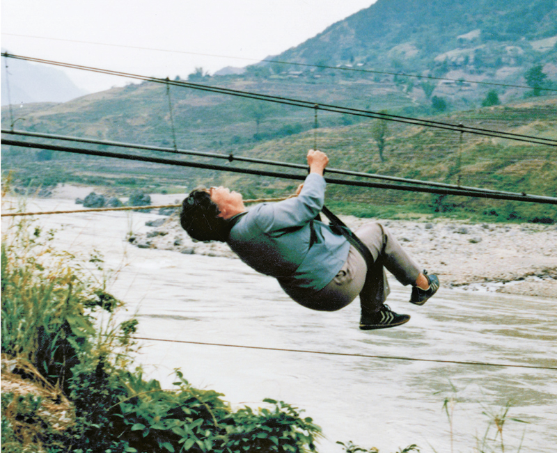 為防治麻風(fēng)病,李桓英長期奔波在涉病地區(qū),云南、貴州、四川的大多數(shù)麻風(fēng)村寨都留下了她的足跡。圖為20世紀(jì)80年代中期,李桓英前往云南省怒江傈僳族自治州瀘水縣看望病人時,乘著當(dāng)?shù)卮迕褡灾频牧锼鲝臎坝康呐戏酵ㄟ^?!”本┦形麄鞑抗﹫D