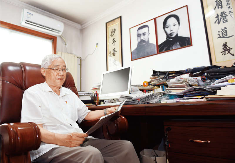 圖為2021年6月12日,李宏塔在家中書(shū)房讀報(bào)。 新華社記者 周牧/攝