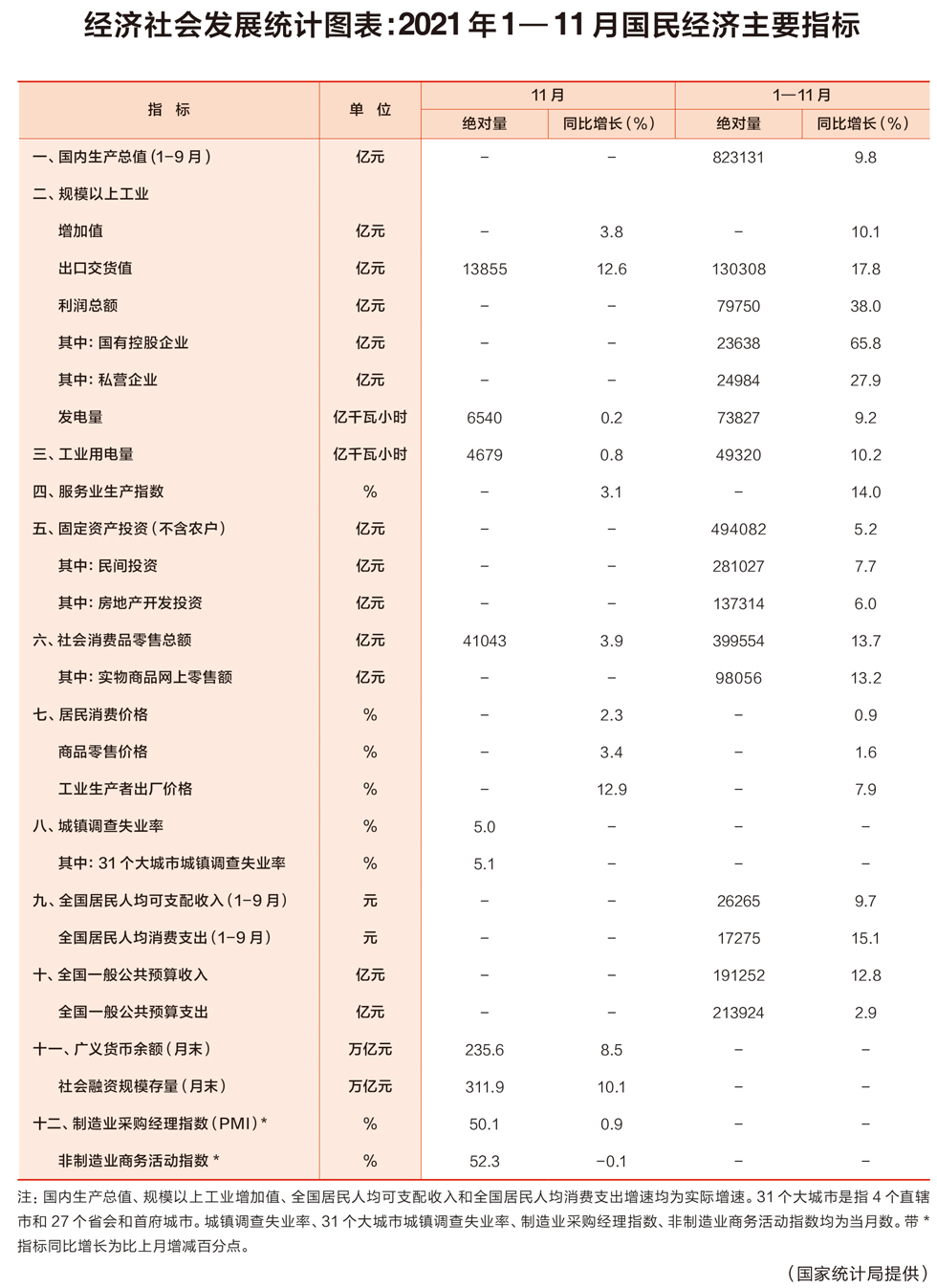 經(jīng)濟(jì)社會發(fā)展統(tǒng)計(jì)圖表:2021年1—11月國民經(jīng)濟(jì)主要指標(biāo)