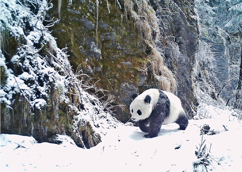 2021年3月1日,在大熊貓國(guó)家公園北川小寨子溝片區(qū)用紅外相機(jī)拍攝的野生大熊貓?!⌒氯A社發(fā)