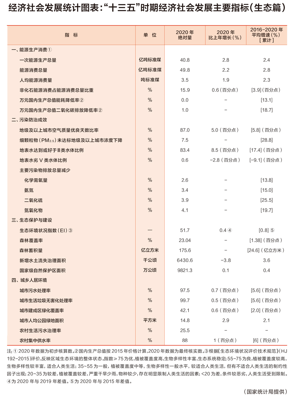 經(jīng)濟社會發(fā)展統(tǒng)計圖表:“十三五”時期經(jīng)濟社會發(fā)展主要指標(生態(tài)篇)