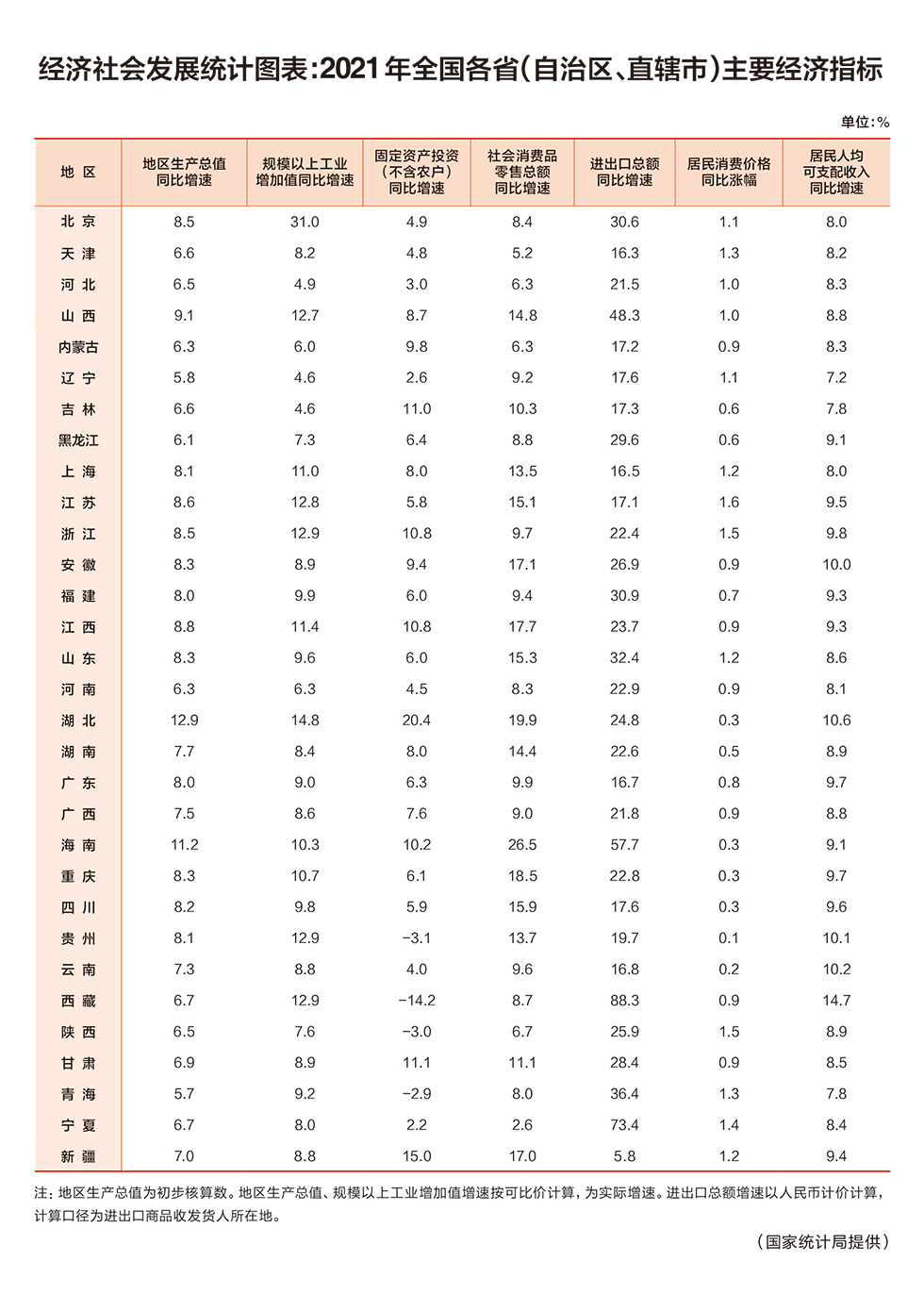 經(jīng)濟(jì)社會發(fā)展統(tǒng)計(jì)圖表:2021年全國各省(自治區(qū)、直轄市)主要經(jīng)濟(jì)指標(biāo)
