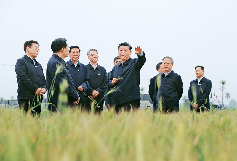 2021年9月13日至14日,中共中央總書記、國(guó)家主席、中央軍委主席習(xí)近平在陜西省榆林市考察。這是13日下午,習(xí)近平在米脂縣銀州街道高西溝村臨時(shí)下車,察看糧食作物長(zhǎng)勢(shì),同正在田間勞作的老鄉(xiāng)拉家常。 新華社記者 李學(xué)仁/攝