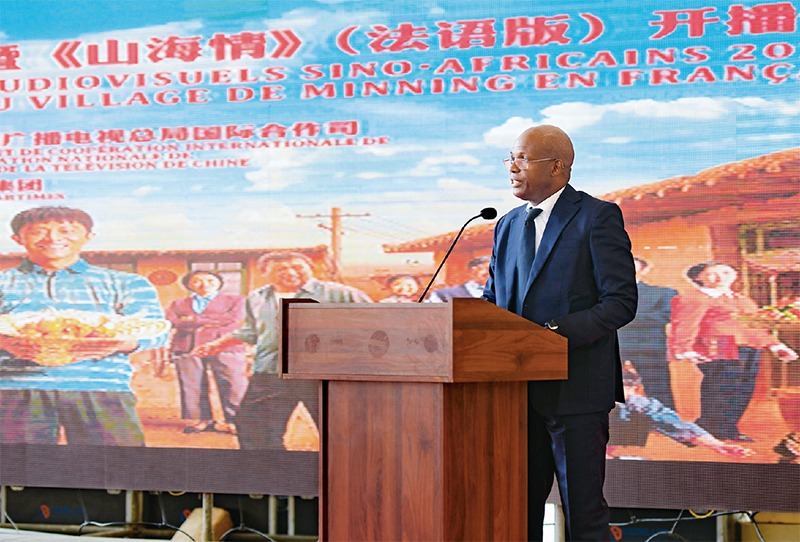 2021年中非視聽節(jié)目推介會11月25日在北京和塞內(nèi)加爾首都達喀爾同步舉辦,電視劇《山海情》(法語版)等中國優(yōu)秀視聽節(jié)目將在塞內(nèi)加爾、加蓬、剛果(金)等非洲國家電視臺播出。圖為在塞內(nèi)加爾首都達喀爾,塞內(nèi)加爾國家二臺頻道總監(jiān)馬迪·迪奧普在推介會上致辭。 新華社記者 李琰/攝