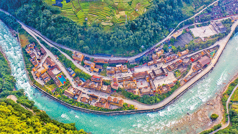 2021年6月,《中共中央 國務院關(guān)于支持浙江高質(zhì)量發(fā)展建設(shè)共同富裕示范區(qū)的意見》發(fā)布,賦予浙江重要示范改革任務。圖為2021年9月12日,浙江省湖州市長興縣小浦鎮(zhèn)合溪新村風光如畫?!∏笫菆D片 譚云俸/攝