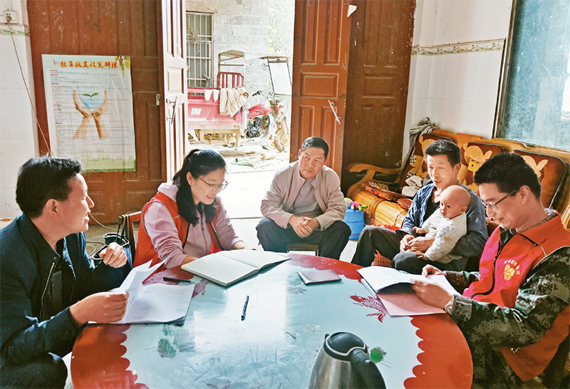 圖為黃文秀(左二)生前下屯訪問(wèn)貧困戶的資料照片。 新華社發(fā)