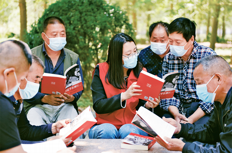 2022年5月16日,山東省臨沂市郯城縣“學(xué)理論宣講團”成員走進馬頭鎮(zhèn)民主街“農(nóng)家花園”,開展“講故事,學(xué)理論”宣講活動。 求是圖片 房德華/攝