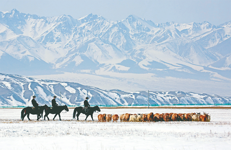 在新疆維吾爾自治區(qū)哈密市乃楞格爾草原,活躍著一支由新疆出入境邊防檢查總站哈密邊境管理支隊(duì)前山邊境派出所組建的“馬背服務(wù)隊(duì)”。從送法上門到惠民政策宣傳、從牧區(qū)巡邏到應(yīng)急救援,這支服務(wù)隊(duì)把“我為群眾辦實(shí)事”落到實(shí)處。圖為“馬背服務(wù)隊(duì)”的民警為轉(zhuǎn)場(chǎng)牧民開展巡邏服務(wù)。 求是圖片 蔡增樂/攝
