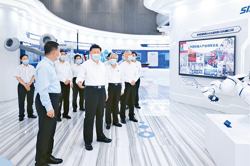 2022年8月16日至17日,中共中央總書記、國家主席、中央軍委主席習(xí)近平在遼寧考察。這是17日下午,習(xí)近平在沈陽新松機(jī)器人自動化股份有限公司展廳,了解公司生產(chǎn)經(jīng)營、自主創(chuàng)新情況。 新華社記者 鞠鵬/攝