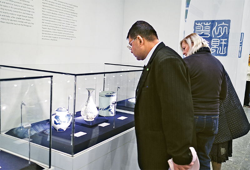 為響應(yīng)“一帶一路”倡議,由上??萍拣^、上海博物館、南海博物館、上海大學(xué)等聯(lián)合策劃推出的“青出于藍(lán)——青花瓷的起源、發(fā)展與交流”特展巡展至“一帶一路”沿線國(guó)家,以科技和文化融合的方式,向公眾展現(xiàn)中國(guó)陶瓷科技發(fā)展成就,向世界講述中國(guó)故事、傳遞中國(guó)聲音。圖為展覽在烏茲別克斯坦展出。 中國(guó)科技館供圖