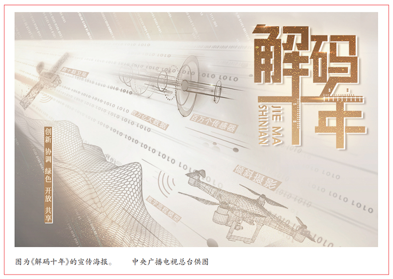 2022年8月9日,一檔清風(fēng)撲面、耳目一新的節(jié)目在《新聞聯(lián)播》亮相。13集系列報(bào)道《解碼十年》一經(jīng)播出,即引發(fā)廣泛關(guān)注和熱評。作為總臺迎接黨的二十大的重磅作品,《解碼十年》以“新發(fā)展理念”為魂,首次嘗試“衛(wèi)星視角+大數(shù)據(jù)調(diào)查+新聞故事”的報(bào)道方式,生動、立體地展現(xiàn)歷史性成就和歷史性變革,解開奮進(jìn)路上的成就之碼、力量之碼、奮進(jìn)之碼、合作之碼,讓場景隨著數(shù)字躍動、讓人物伴著數(shù)字鮮活、讓10年巨變可感可知可信可敬。節(jié)目實(shí)現(xiàn)融媒體傳播,全網(wǎng)累計(jì)觸達(dá)量超過60億人次,獲得社會各界一致好評。