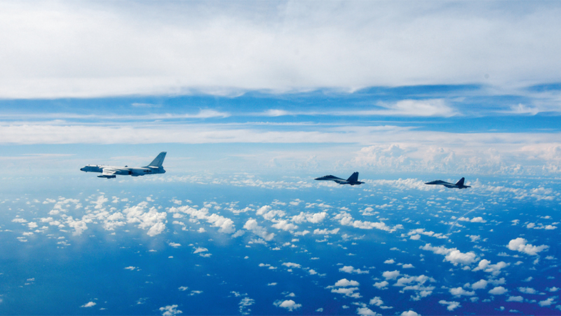 2022年8月7日,中國人民解放軍東部戰(zhàn)區(qū)按計劃在臺灣島周邊??沼蜻M(jìn)行實戰(zhàn)化聯(lián)合演訓(xùn)。圖為戰(zhàn)機(jī)編隊飛行。 新華社發(fā) 李秉諭/攝