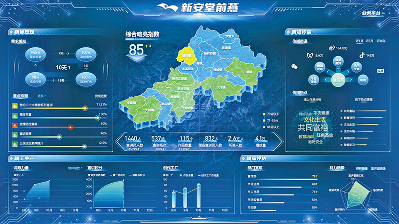 為深入學(xué)習(xí)宣傳貫徹黨的二十大精神,浙江杭州建德市推出“新安堂前燕”數(shù)字化應(yīng)用場(chǎng)景2.0版,以數(shù)字賦能提升基層理論宣講成效。圖為“新安堂前燕”數(shù)字駕駛艙?!〗ǖ率形麄鞑抗﹫D