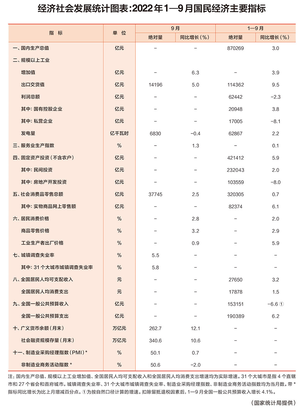 經(jīng)濟(jì)社會(huì)發(fā)展統(tǒng)計(jì)圖表:2022年1—9月國民經(jīng)濟(jì)主要指標(biāo)