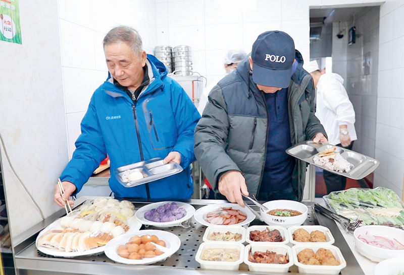 居家的老人可以享受送餐入戶,愿意出門活動(dòng)的老人則前來餐廳用餐?!伴_飯了沒呢,我今天來得早。”11時(shí)許,居民孫立輝第一個(gè)來到餐廳,拿起餐盤打了愛吃的炸黃花魚、炸地瓜丸、土豆燉茄子、孜然肉片?!皻q數(shù)大了不愿意起火做飯,老兩口一頓也做不了這么多花樣?!睂O立輝告訴記者,“助老餐廳不僅價(jià)格優(yōu)惠,而且干凈合口味,想吃飯了下樓遛彎兒的工夫就來了,特別方便?!闭f話間,老人們陸續(xù)到來,大家有說有笑地有序取餐、用餐,直言助老餐廳辦到了老年人的心坎上。