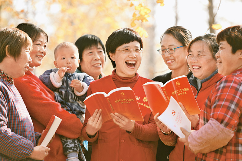 圖為2022年11月17日,山東省臨沂市郯城縣“巾幗宣講團”成員為群眾宣講黨的二十大精神。 人民圖片 房德華/攝