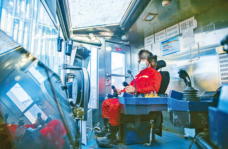 圖為2022年12月25日,大慶油田1205鉆井隊隊員操作電動遙控手柄進(jìn)行作業(yè)。 王琦/攝