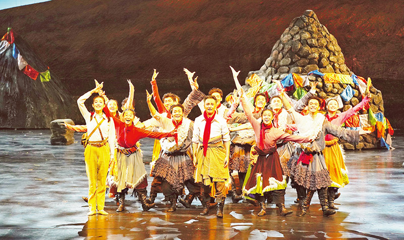 新征程上推出更多增強(qiáng)人民精神力量的優(yōu)秀作品,就要培育造就大批德藝雙馨的文學(xué)藝術(shù)家和規(guī)模宏大的文化文藝人才隊(duì)伍。圖為2022年10月7日,北京舞蹈學(xué)院原創(chuàng)民族舞劇《唱支山歌給黨聽(tīng)》在國(guó)家大劇院歌劇院上演,舞劇生動(dòng)再現(xiàn)黨領(lǐng)導(dǎo)西藏人民開(kāi)展民主改革、實(shí)現(xiàn)繁榮發(fā)展這一波瀾壯闊的歷史,表達(dá)西藏人民愛(ài)黨愛(ài)國(guó)的深厚情懷。 中國(guó)作協(xié)供圖
