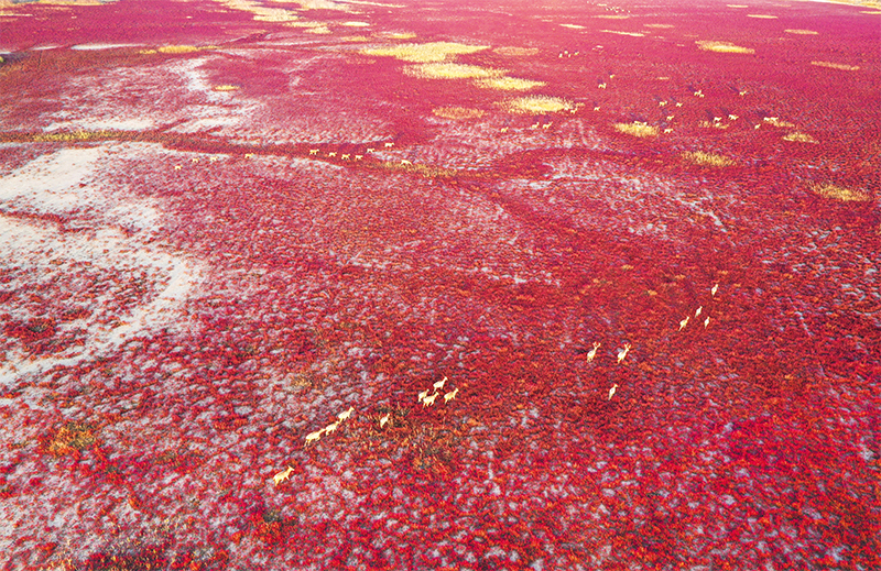 江蘇省鹽城市擁有582公里海岸線、76.97萬公頃濕地,孕育著太平洋西岸和亞洲大陸邊緣面積最大、生態(tài)保護(hù)最好的海岸型濕地。2019年,位于鹽城市的中國黃(渤)海候鳥棲息地(第一期)成功列入世界遺產(chǎn)名錄。圖為2022年11月9日,在鹽城東臺(tái)條子泥濕地拍攝的麋鹿(無人機(jī)照片)。 新華社記者 楊磊/攝