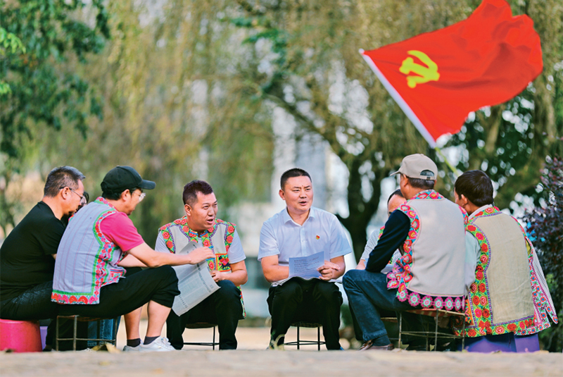 云南省曲靖市陸良縣紀(jì)委監(jiān)委以“清風(fēng)講壇”為載體,組織宣講員通過(guò)面對(duì)面、互動(dòng)化、通俗化的方式開(kāi)展宣講活動(dòng),推動(dòng)黨的二十大精神在基層落地生根。圖為2022年10月26日,陸良縣龍海鄉(xiāng)小新村的彝族群眾參加宣講活動(dòng)現(xiàn)場(chǎng)。 人民視覺(jué) 王勇/攝