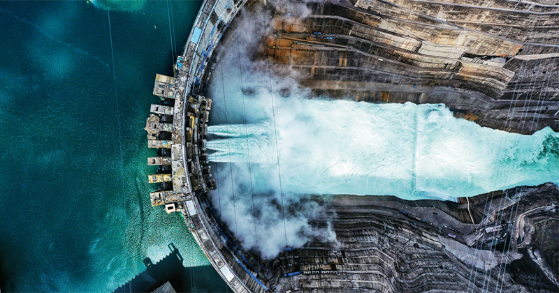 金沙江下游,一片河流與高山交錯(cuò)的雄奇土地,天府之國(guó)和彩云之南分列兩岸。滔滔江水映襯著巍峨大壩,盡顯“高峽平湖”之美。這里是實(shí)施“西電東送”的國(guó)家重大工程,也是當(dāng)今世界在建規(guī)模最大、技術(shù)難度最高的水電工程——白鶴灘水電站。這一工程由中國(guó)三峽集團(tuán)負(fù)責(zé)建設(shè),工程開發(fā)任務(wù)以發(fā)電為主,兼顧防洪、航運(yùn),并促進(jìn)地方經(jīng)濟(jì)社會(huì)發(fā)展。2022年12月20日,白鶴灘水電站實(shí)現(xiàn)全部機(jī)組投產(chǎn)發(fā)電。至此,長(zhǎng)江干流上6座巨型梯級(jí)水電站“連珠成串”,形成了世界最大清潔能源走廊。