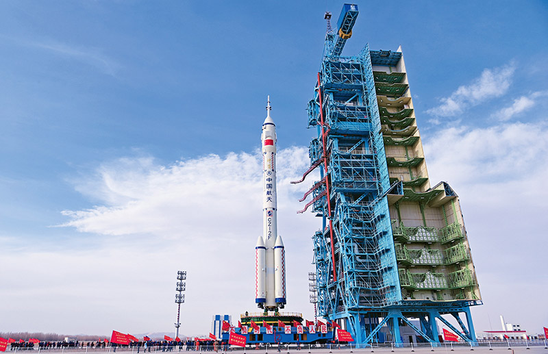 航天技術(shù)是一個國家工業(yè)水平和科技水平的集中體現(xiàn)。2022年11月29日,搭載神舟十五號載人飛船的長征二號F遙十五運載火箭在酒泉衛(wèi)星發(fā)射中心點火發(fā)射,并取得圓滿成功。圖為2022年11月21日,神舟十五號載人飛船與長征二號F遙十五運載火箭組合體轉(zhuǎn)運至發(fā)射區(qū)。 新華社發(fā) 汪江波/攝