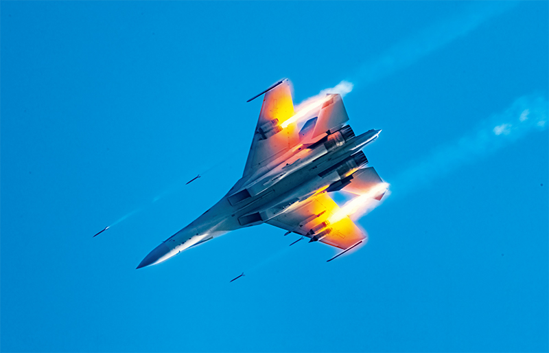 空軍某基地緊貼實戰(zhàn)組織官兵開展多課目實戰(zhàn)化訓(xùn)練。圖為戰(zhàn)機(jī)對地面目標(biāo)實施攻擊。 解放軍畫報供圖 徐晨桐/攝