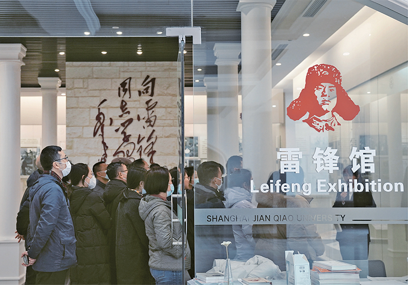 2023年3月4日,“弘揚(yáng)雷鋒精神 培育時(shí)代新人”主題活動(dòng)在上海建橋?qū)W院舉行。來自上海建橋?qū)W院、上海海洋大學(xué)、上海市臨港實(shí)驗(yàn)中學(xué)、浦東新區(qū)建平臨港小學(xué)等9所學(xué)校的師生代表,同上一堂雷鋒精神的思政課。圖為人們在上海建橋?qū)W院雷鋒館參觀。 新華社記者 劉穎/攝