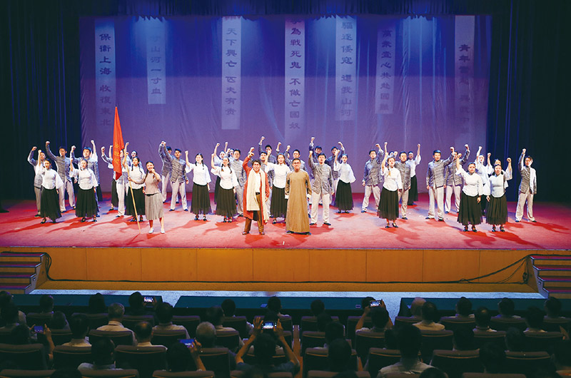 中國(guó)浦東干部學(xué)院長(zhǎng)期重視向?qū)W員講述紅色故事、加強(qiáng)黨性修養(yǎng)、傳承紅色基因。圖為音樂(lè)劇《國(guó)之當(dāng)歌》在該學(xué)院的演出現(xiàn)場(chǎng)。 中國(guó)浦東干部學(xué)院供圖