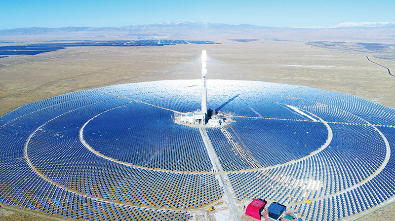 青海共和熔鹽塔式光熱電站是國家首批20個光熱示范項目之一,該項目有力地推動和促進了國內(nèi)光熱產(chǎn)業(yè)的發(fā)展。圖為青海共和熔鹽塔式光熱電站。 中國電建供圖 李強/攝