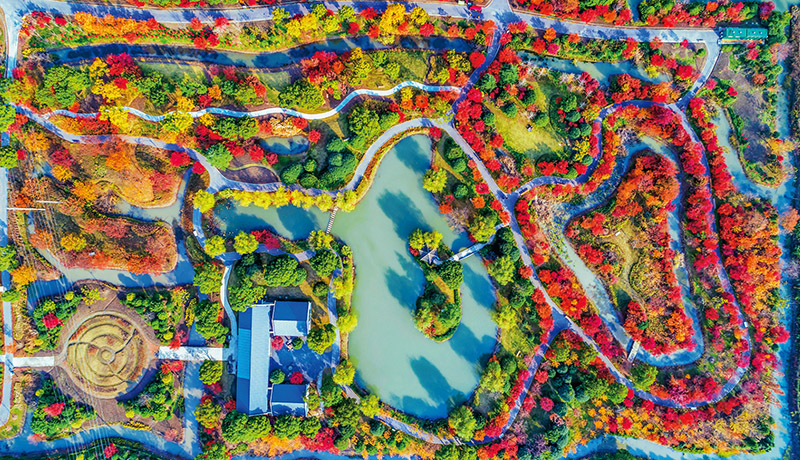 圖為2022年11月,上海市金山區(qū)朱涇鎮(zhèn)待涇村“花開海上”生態(tài)園五彩斑斕、秋意正濃。 金山區(qū)朱涇鎮(zhèn)黨委供圖