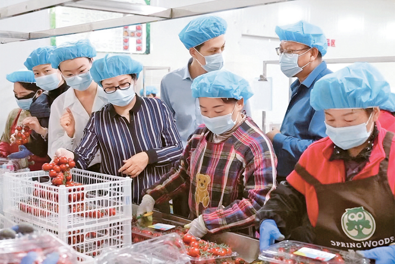 圖為2023年5月15日,云南大理春沐源農(nóng)業(yè)科技有限公司包裝車間內(nèi),中華全國總工會赴云南蹲點工作組開展“進(jìn)車間勞動 交工人朋友”實踐活動,深入公司生產(chǎn)一線,與工人一同進(jìn)行產(chǎn)品包裝。 云南省總工會供圖 王自強(qiáng)/攝