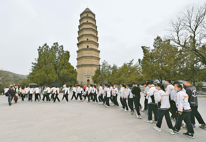 2022年10月,習(xí)近平總書記在瞻仰延安革命紀(jì)念地時(shí)指出,延安革命舊址見證了我們黨在延安時(shí)期領(lǐng)導(dǎo)中國(guó)革命、探索馬克思主義中國(guó)化時(shí)代化的光輝歷程,是一本永遠(yuǎn)讀不完的書。圖為參觀者在陜西延安寶塔山參觀。 新華社記者 張博文/攝