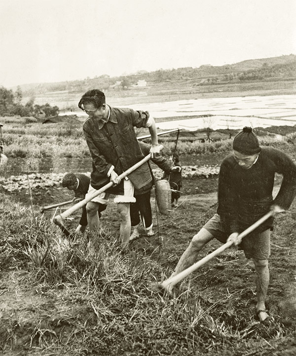 圖為周立波在清溪村與鄉(xiāng)親們一起勞作。 中國作協(xié)供圖