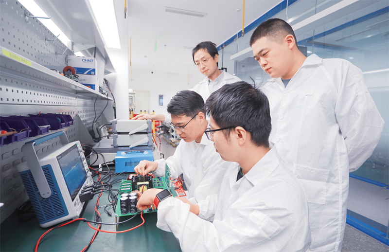 西安交通大學(xué)依托中國西部科技創(chuàng)新港建設(shè),深入實施“產(chǎn)教融合、協(xié)同育人”創(chuàng)新工程,與近百家領(lǐng)軍企業(yè)、科研院所開展務(wù)實合作,建立校企深度融合創(chuàng)新聯(lián)合體。圖為企業(yè)導(dǎo)師在正泰集團(tuán)—西安交大聯(lián)合創(chuàng)新中心帶領(lǐng)學(xué)生開展聯(lián)合研發(fā)工作。 西安交通大學(xué)供圖
