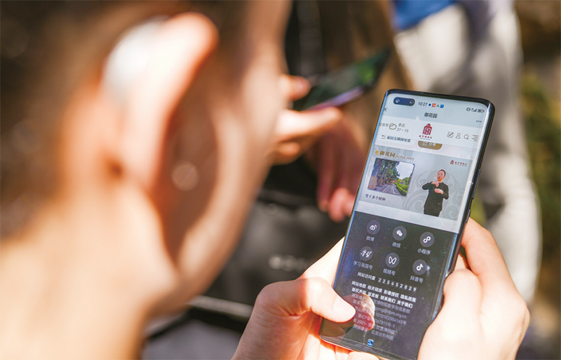 2023年5月18日,故宮博物院、北京手語(yǔ)研究會(huì)聯(lián)合舉辦“聽(tīng)見(jiàn)文化的聲音——故宮博物院手語(yǔ)無(wú)障礙服務(wù)發(fā)布會(huì)”,這是北京首批手語(yǔ)導(dǎo)覽服務(wù)正式上線發(fā)布。圖為一名聽(tīng)障人士在觀看手語(yǔ)講解視頻。 新華社記者 彭子洋/攝