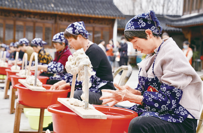 浙江省桐鄉(xiāng)市在推進公民道德建設過程中,堅持以文化人、以文惠民、以文潤心,充分彰顯了文化的道德浸潤功能。圖為2022年3月10日,桐鄉(xiāng)市石門鎮(zhèn)東池村舉辦蠶桑絲織技藝大賽,展示傳統(tǒng)技藝,傳承蠶桑文化。 桐鄉(xiāng)市委宣傳部供圖