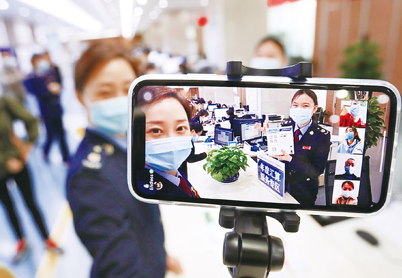 稅務(wù)部門持續(xù)創(chuàng)新提升稅費政策服務(wù)效能,在連續(xù)第10年開展的“便民辦稅春風行動”中,推出一系列減環(huán)節(jié)、減資料、減時間、減成本的創(chuàng)新服務(wù)舉措。圖為2023年4月24日,國家稅務(wù)總局西安國家民用航天產(chǎn)業(yè)基地稅務(wù)局干部化身“主播”,向納稅人提供個性化政策宣講解讀及辦稅指引。 國家稅務(wù)總局供圖 李鑫、陳顯信/攝