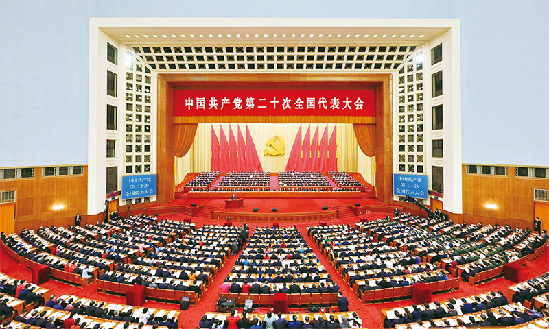 黨的二十大提出開辟馬克思主義中國化時代化新境界的重大任務,強調(diào)這是當代中國共產(chǎn)黨人的莊嚴歷史責任。圖為2022年10月16日,中國共產(chǎn)黨第二十次全國代表大會在北京人民大會堂開幕。 新華社記者 岳月偉/攝
