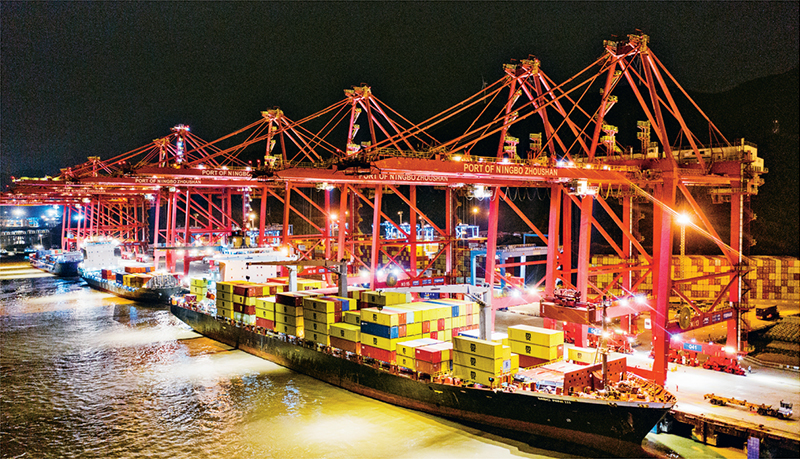 近年來,浙江省寧波舟山港發(fā)揮區(qū)位優(yōu)勢,不斷拓展海陸運(yùn)輸通道,推進(jìn)高質(zhì)量共建“一帶一路”行穩(wěn)致遠(yuǎn)。圖為2023年9月21日,在該港穿山港區(qū)集裝箱碼頭,“地中海琳妮三號”輪進(jìn)行集裝箱吊裝作業(yè)。 新華社發(fā) 蔣曉東/攝
