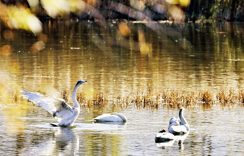 近年來,北京市水務(wù)局密云水庫管理部門大力開展以自然恢復(fù)為主、人工修復(fù)相結(jié)合的水生態(tài)保護與修復(fù)和生態(tài)環(huán)境治理,推進山水林田湖草精細化管理工作,提高庫區(qū)生物多樣性豐富度,為動植物提供了優(yōu)質(zhì)的生存環(huán)境,也提升了密云水庫的生態(tài)環(huán)境和水質(zhì)。圖為2022年11月15日,天鵝在密云水庫流域的清水河內(nèi)棲息覓食。 新華社記者 李欣/攝