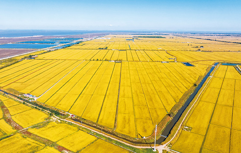 圖為2023年9月20日,遼寧省盤錦市紅海灘國(guó)家水稻公園稻田一片金黃,一派豐收景象。 中新社發(fā) 韓加君/攝