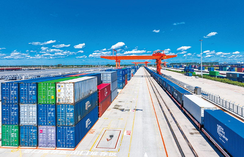 中歐班列(沈陽(yáng))集結(jié)中心占地面積達(dá)17.7萬(wàn)平方米,可以實(shí)現(xiàn)“一站式辦理、一條龍通關(guān)”。圖為2023年9月19日,該集結(jié)中心投入運(yùn)營(yíng)后第240列中歐班列整裝待發(fā)。 遼寧日?qǐng)?bào)記者 查金輝/攝
